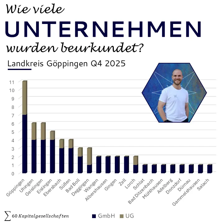 Die aktuellen Zahlen zu den beurkundeten Unternehmen im Landkreis Göppingen im vierten Quartal 2025 zeigen ein klares Bild: Gründungsaktivität ist vorhanden – aber sie verteilt sich sehr unterschiedlich auf die einzelnen Kommunen.